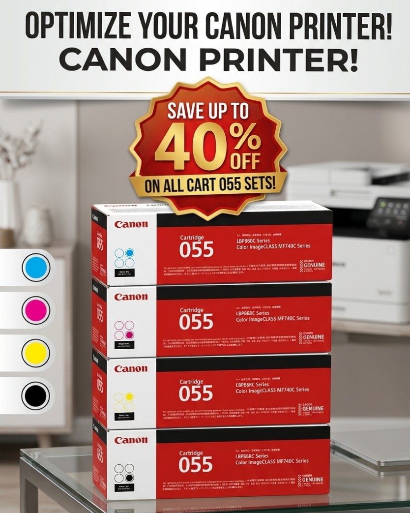 it’s time to stock up! Get genuine, high-quality Canon Cartridge 055 Sets for your imageCLASS printer and save up to 40%. Enjoy professional prints for less. This is a limited-time offer at Cartridge Shoppee!