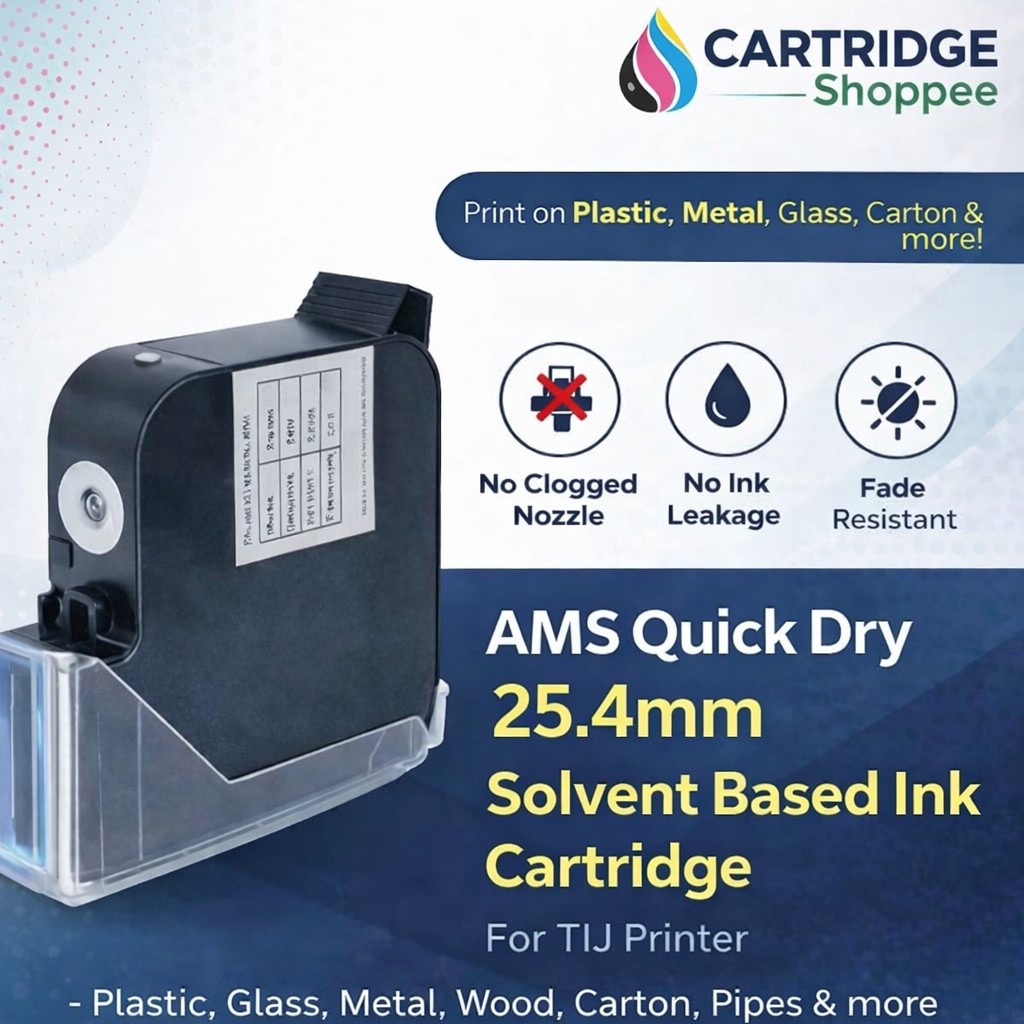 We are happy to introduce the AMS Quick Dry 25.4mm (1 Inch) Solvent Based Ink Cartridge for TIJ Printers β the perfect solution for high-quality industrial printing on any surface.