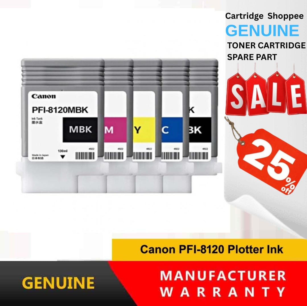 Upgrade your professional printing experience with Canon PFI-8120 Genuine Plotter Ink Cartridges, specially designed for Canon TM Series large-format printers. This pigment-based ink delivers sharp, fade-resistant, and smudge-free prints — ideal for CAD drawings, posters, and technical graphics. Each cartridge offers consistent ink flow and high page yield (1000–2500 pages @ 5% coverage), ensuring cost-effective and reliable printing for business or professional use. When you buy from Cartridge Shoppee / AMSekart / AMS Technology, you’re guaranteed 100% original Canon ink with manufacturer warranty and flat 25% OFF for a limited time! Available Colours: PFI-8120 BK, PFI-8120 C, PFI-8120 M, PFI-8120 Y, PFI-8120 MBK Made in Japan 💰 Current Offer: 🔥 Flat 25% OFF – Limited Period Offer 📦 Available in Stock | 🚚 Fast Pan-India Shipping