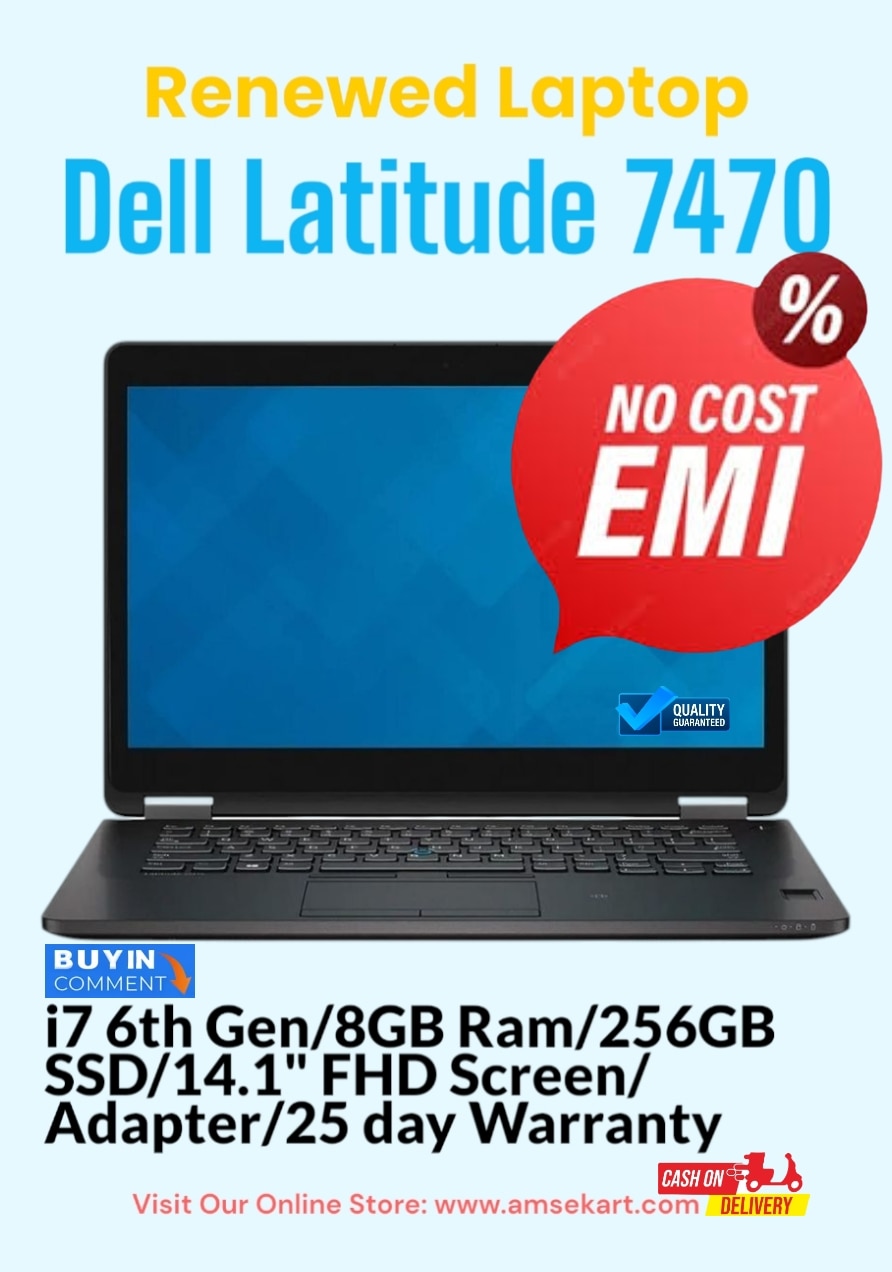 Looking for a powerful and budget-friendly laptop? The Refurbished Dell Latitude E7470 is designed to deliver top-notch performance, reliability, and portability at an unbeatable price. Ideal for professionals, students, and remote workers, this renewed Dell laptop blends performance with value. Processor: Intel Core i7-6300U 6th Gen, up to 3.0GHz Display: 14.0" HD Anti-Glare Screen (1366x768 Resolution) Memory: 8GB DDR4 RAM Storage: 256GB M.2 NVMe SSD Operating System: Windows 10 Pro 64-bit (Activated) Graphics: Intel HD Graphics 520 Design: Lightweight, compact & durable build (Cosmetic Grade A) Connectivity: USB-C, USB 3.1, HDMI, VGA, LAN, Wi-Fi, Bluetooth 4.1 Keyboard: Backlit Keyboard with Multi-touch Touchpad Camera: HD Webcam (1280x720p) Battery Life: Up to 2 hours of backup Warranty: 25 Days Testing Warranty EMI & COD Available: ₹999 Advance for COD | Zero Down Payment EMI GST Invoice Included: Price includes 18% GST Shipping: Fast & Free Shipping across India Why Buy This Refurbished Dell Laptop? Reliable Refurbishment: Professionally renewed and quality tested for excellent performance. Portable & Lightweight: Sleek design makes it easy to carry, ideal for travel or on-the-go use. Customizable Options: Choose RAM and SSD based on your needs. Powerful Multitasking: Perfect for office work, browsing, video calls, and light editing. Affordable Business Laptop: High-end features at a fraction of the cost of new laptops. Software: Comes pre-installed